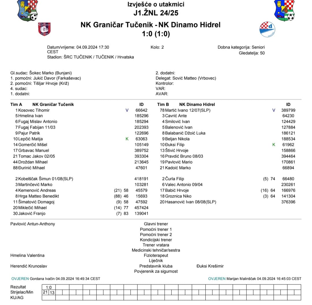 – Uz dosta naših prigoda, pogotovo iz prvog poluvremena koje nismo uspjeli iskoristiti, iz jednog odlično izvedenog slobodnog udarca mladog Jakova Tomca zabili smo gol koji je na kraju bio dovoljan za tri boda protiv vrlo dobre i korektne ekipe Dinamo Hidrela – ističe trener Graničara, Antun Anthony Pavlović.