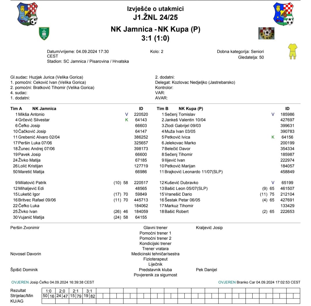 – Ušli smo bolje u utakmicu i nametnuli svoj tempo igre. Kroz utakmicu smo pokazali zadovoljavajuću razinu borbenosti i agresivnosti što je bilo ključno u ovoj utakmici. Isprali smo gorak okus poraza iz prvog kola te priželjkujemo nastavak sezone u ovome smjeru – komentar je predstavnika Jamnice, Dominika Špišića.
