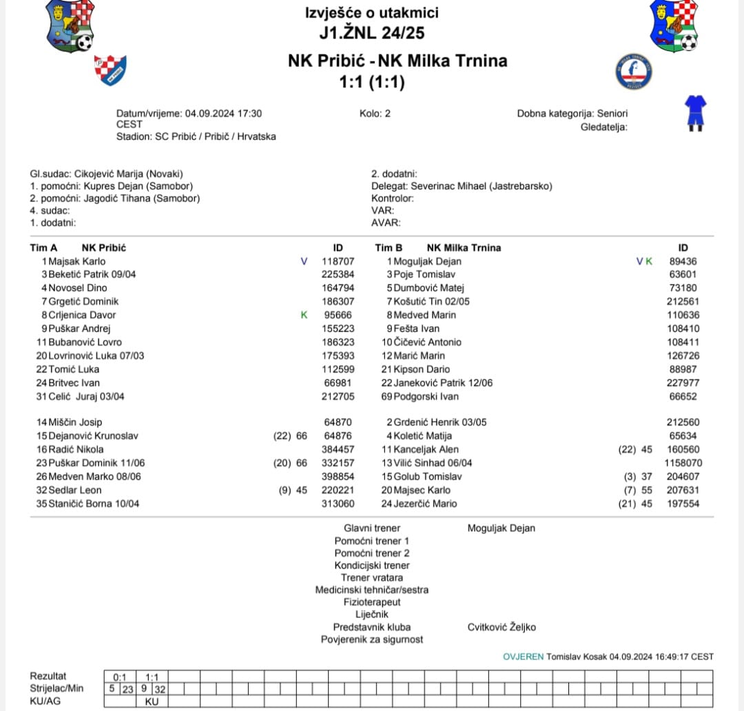 NK Pribić – Milka Trnina 1:1