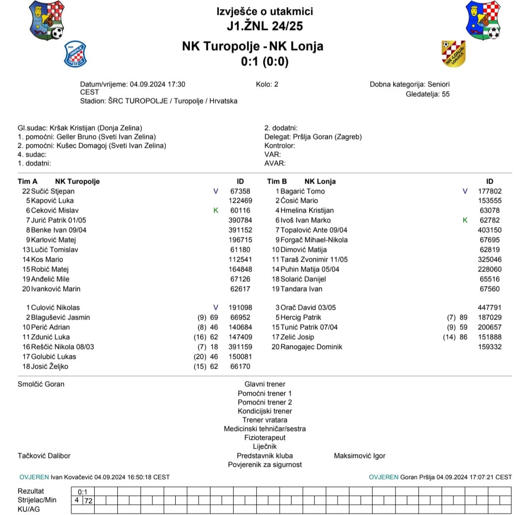 Gosti iz Lonjice su kod Turopolja došli do prve pobjede ove sezone, i to pogotkom Kristijana Hmeline u 72. minuti. Domaćini ostaju na tri boda iz prvoga kola te se na tablici nalaze na devetome mjestu.