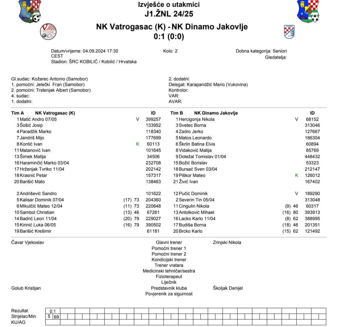 Ova utakmica odlučena je pogotkom Leonarda Matosa u 69. minuti, a Dinamo Jakovlje ovom pobjedom dolazi do druge pobjede u drugom kolu. S druge strane, Vatrogasac se nalazi na pretposljednjem mjestu s dva poraza.