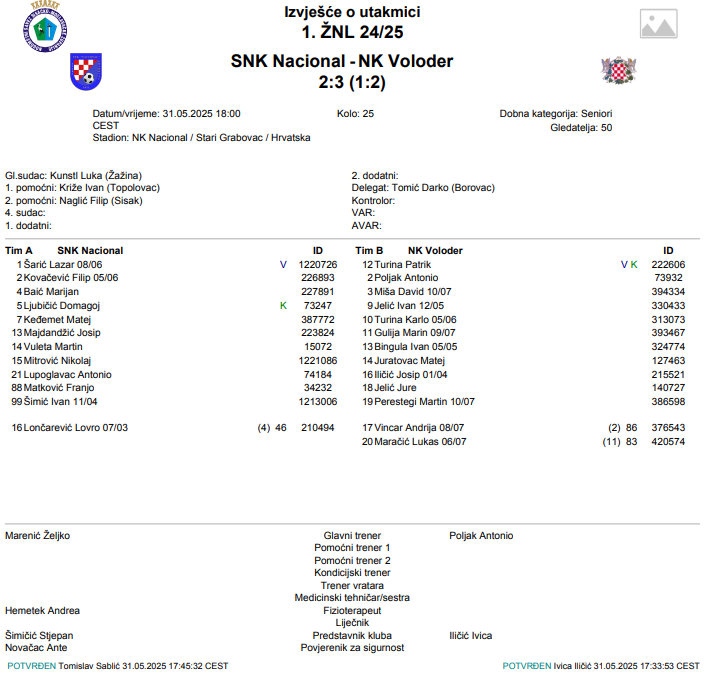 U još jednoj zanimljivoj utakmici, SNK “Nacional” je na svom terenu bilo lošije od Volodera s 2:3. Bila je to napeta utakmica s preokretima, a gostujuća momčad je na kraju uspjela osvojiti sva tri boda. Voloder je pružio dobar otpor i pošteno su namučili i u konačnici pobijedili domaćina, no Nacional ostaje žal za prolivenim mlijekom. Ovaj rezultat ima značajan utjecaj na sredinu ljestvice, gdje je nekoliko momčadi bodovno blizu.