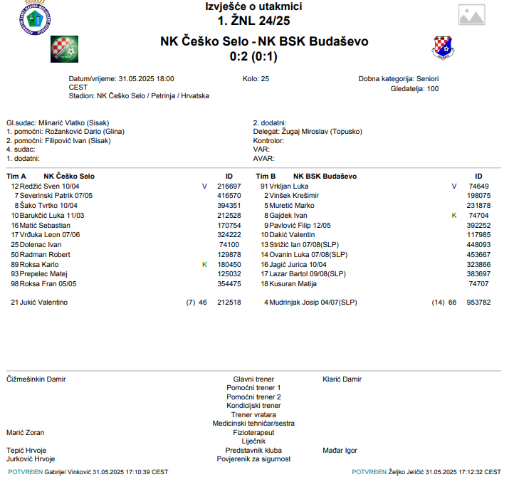 Češko Selo je na svom terenu izgubilo protiv NK BSK Budaševa odigravši 0:2. Bila je to jednosmjerna utakmica s prilikama na obje strane, ali gosti su ti koji su postigli više pogodaka i kući odnijeli puni plijen. Bila je ovo utakmica od velike važnosti za domaćine kojima gori pod nogama ukoliko žele i sljedeće godine igrati u elitnom društvu te će se sve rješavati u zadnjem kolu. Češko Selo se trenutno nalazi na zadnjem mjestu s dva boda manje nego TŠK 1932 i Banovac.