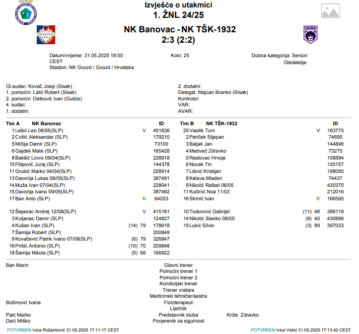 U derbiju začelja, NK Banovac je na svom terenu dočekao TŠK – 1932. Gledatelji su mogli vidjeti pravu dramu s pet pogodaka, a na kraju je slavila gostujuća momčad iz Topolovca rezultatom 3:2. Gosti su odlično krenuli u dvoboj s ranim pogotkom koji ih je podignuo mentalno, ali domaćini nisu odustajali i znali su važnost i težinu ove utakmice i ova tri boda te su se uspješno i brzinski vratili iz zaostatka i prešli u vodstvo. TŠK nije odustajao, nego je ostao potpuno koncentriran kao što se moglo vidjeti od početka utakmice, te ih je koncentracija nagradila u 40. minuti gdje su postigli svoj drugi gol za izjednačenje. Nastavak susreta donio je malo opreznije i povučenije dvije momčad, ali onda su gosti pronašli put do mreže u 60. minuti i stavili domaće igrače i navijače u stanje šoka. Banovac je do kraja susreta napadao i pritiskao, ali uzalud. Ova pobjeda je izuzetno važna za TŠK – 1932 u borbi za ostanak, dok je Banovac ovim porazom dodatno zakomplicirao svoju situaciju. Utakmice momčadi s dna ljestvice često su nepredvidive i pune naboja, a ova je bila pravi primjer toga.
