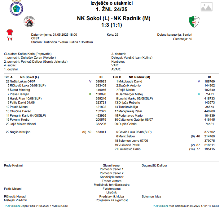 Još jedna zanimljiva utakmica odigrana je u Velikoj Ludini, gdje je NK Radnik (M) gostovao kod Sokola (L). Domaćini su izgubili s 3:1, čime su potvrdili svoj blagi pad forme pred kraj prvenstva, ali i dalje se nalaze u gornjem dijelu ljestvice, dok gosti imaju razloga za slavlje jer su par godina za redom završili u TOP 3. Sokol (L), unatoč porazu, pokazao je solidan otpor, no kvaliteta Radnika (M) bila je presudna.